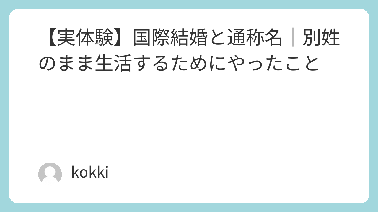 これから国際結婚を予定している方や、 別姓で不便を感じている方の参考になれば幸いです。